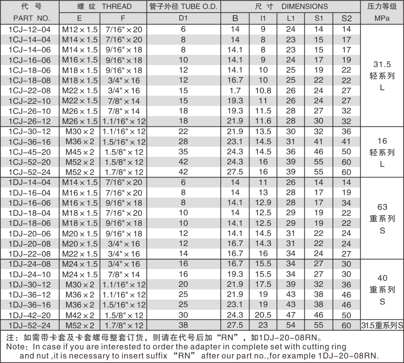 卡套式硬管接头