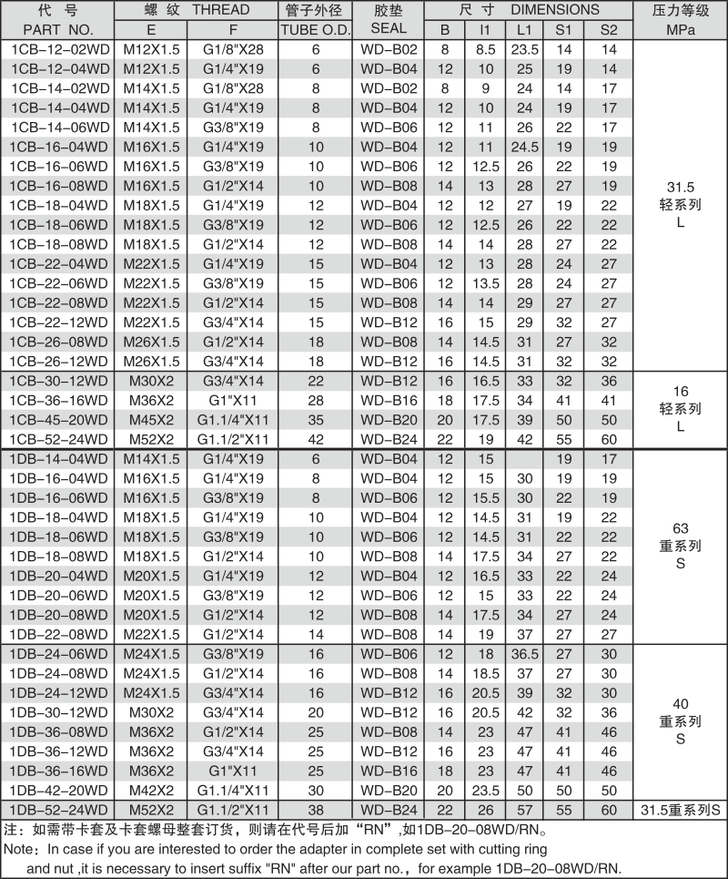 > 英管螺纹胶垫密封柱端 1CB-WD