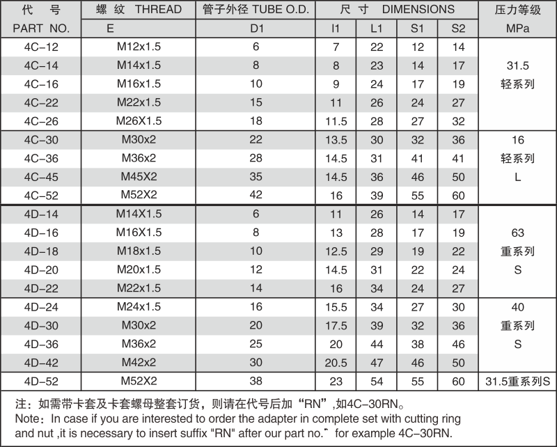 卡套式硬管接头