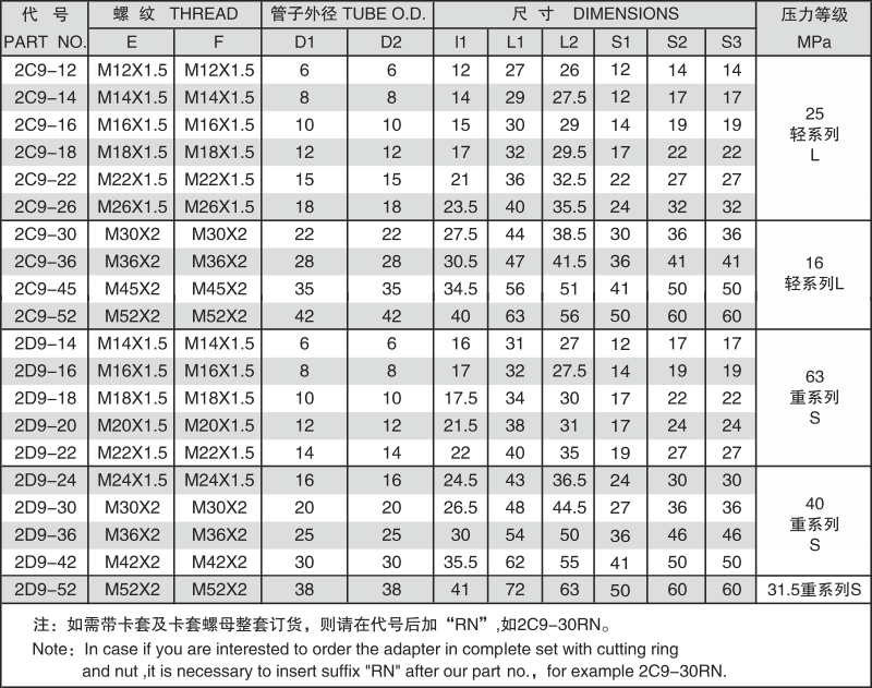 卡套式硬管接头