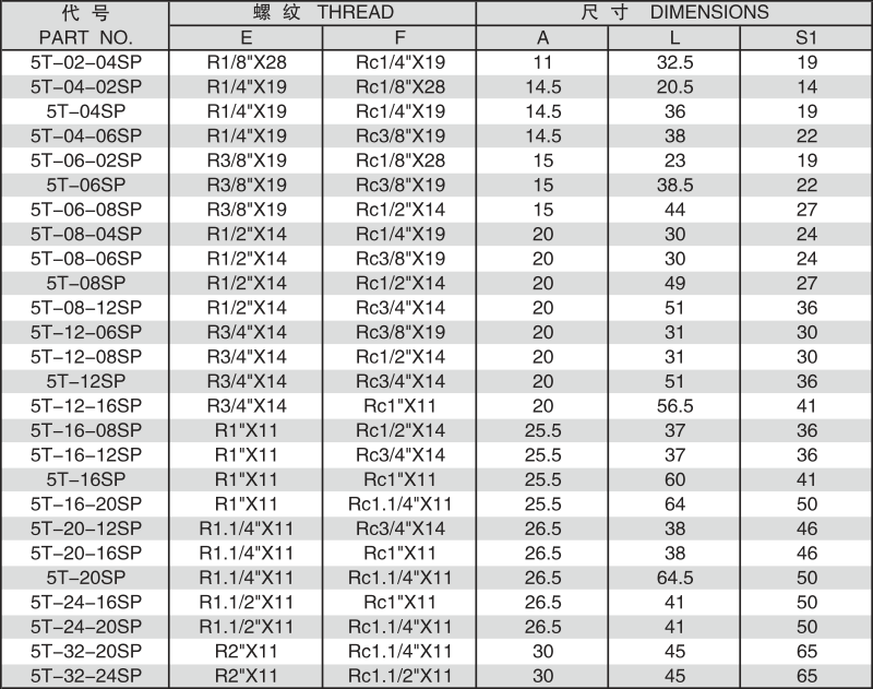 > 英锥管外螺纹英锥管内螺纹 5T-SP